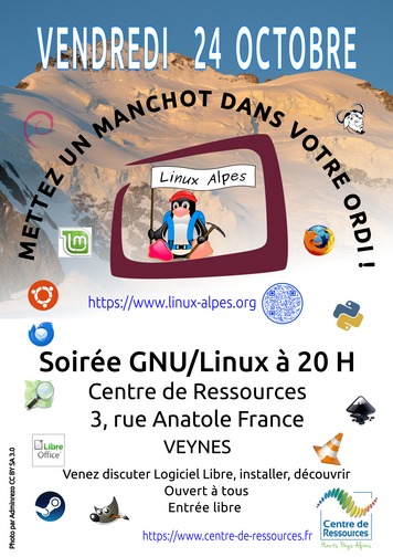 Venez avec votre liste de questions ou simplement pour découvrir les logiciels libres. Les membres de Linux-Alpes seront là pour vous aider ou vous conseiller dans la maîtrise du système GNU/Linux.